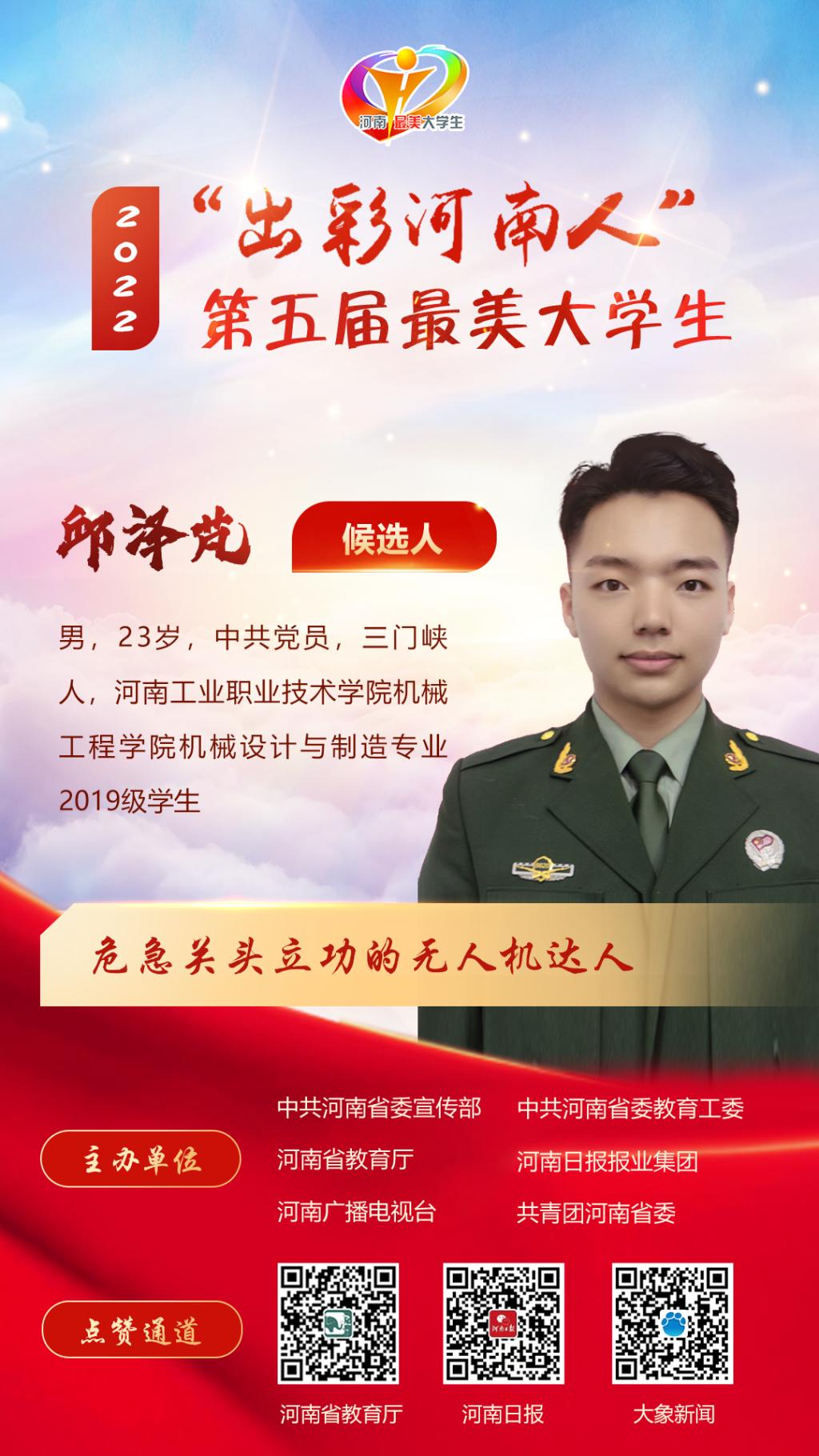 赞!我校学生邱泽芃入选河南省第五届“最美大学生”候选人