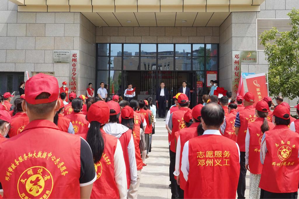 5月26日,学校新时代文明实践服务基地揭牌仪式在邓州市新时代文明实践中心顺利举行,南阳市文明办未成年人科科长张春晓、邓州市市委宣传部常务副部长庞渝、学校党委宣传部部长杨俊峰出席揭牌仪式,学校党委宣传部