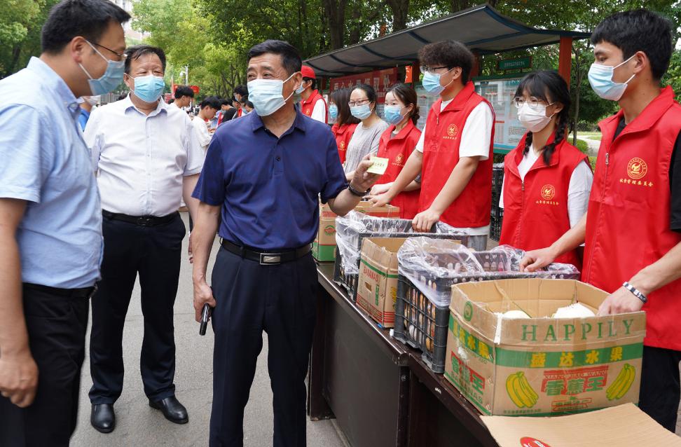 5月25日,校长王伟带领党委宣传部、学生处、后勤服务中心、团委等单位工作人员深入孔明路校区食堂检查指导食品安全工作,并与学生共进午餐。在孔明路校区学生食堂一楼,王伟详细了解食堂食品采购、贮存、加工制作
