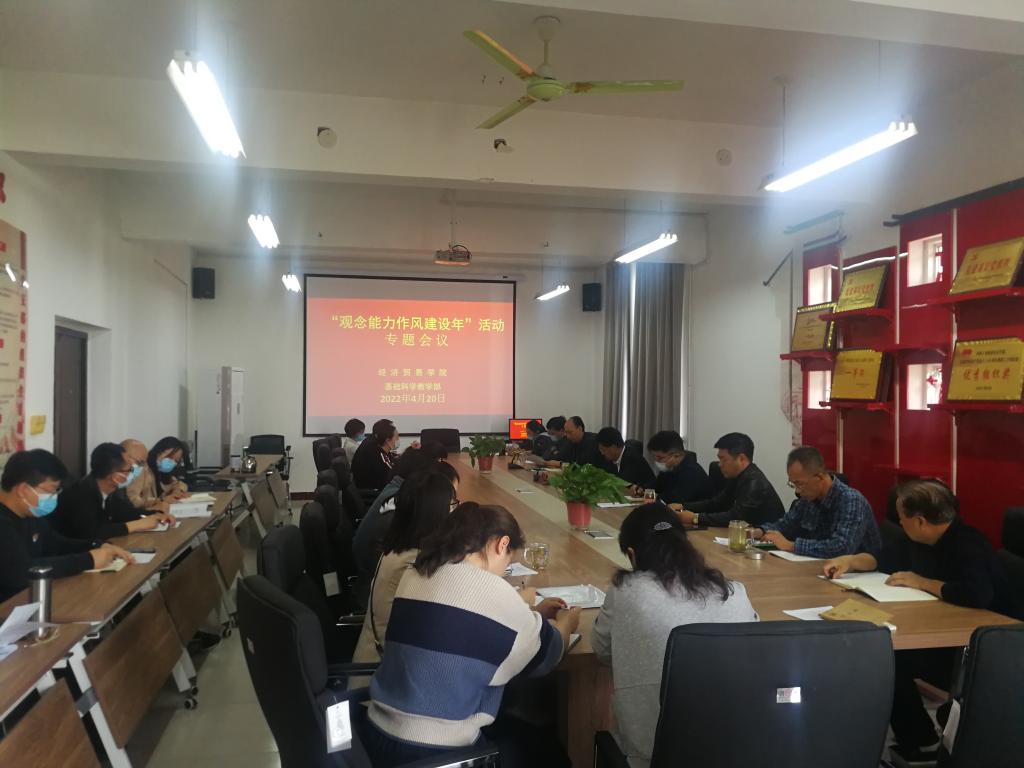 校领导参加经济贸易学院、基础科学教学部“观念能力作风建设年”活动专题会议