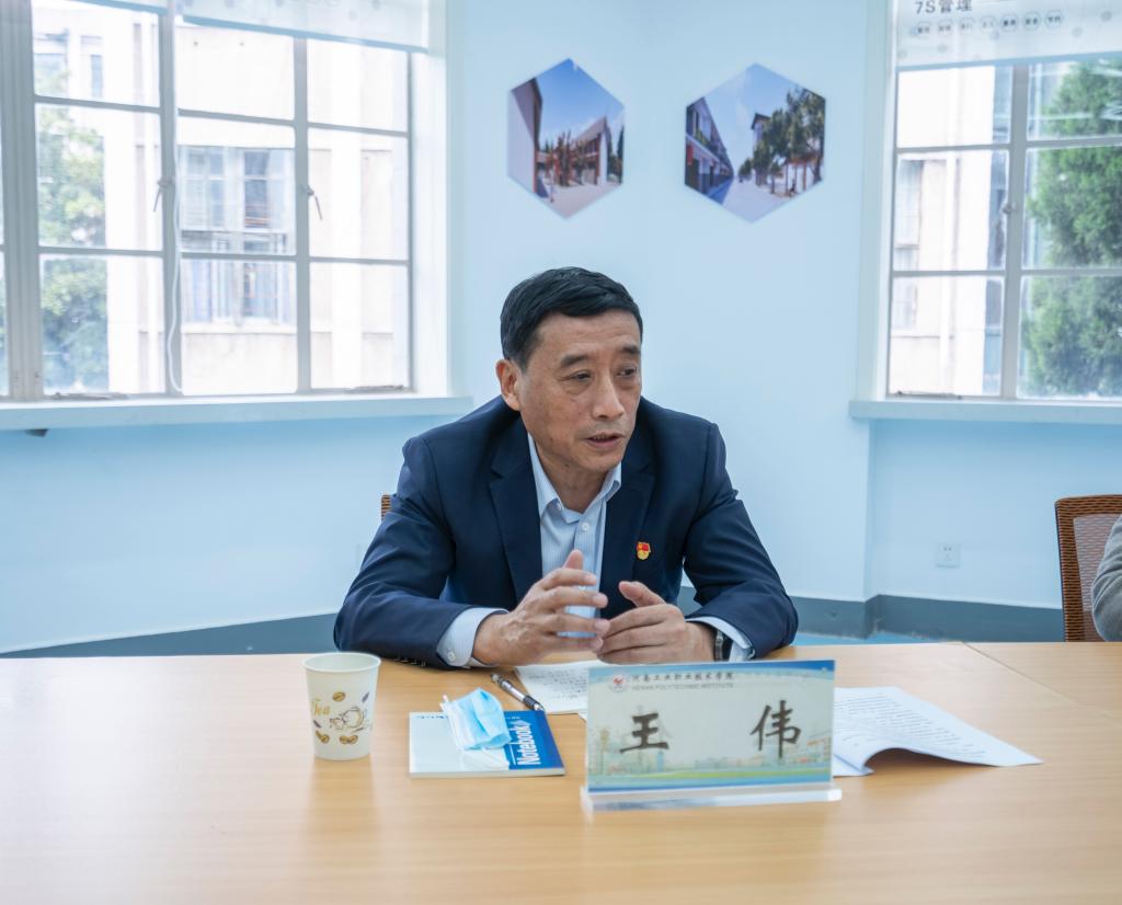 为加强基层党建工作,以基层党建高质量,促进学校事业发展高质量,2022年4月4日下午,校长王伟到建筑工程学院指导全国党建样板支部培育单位--装饰设计专业党支部建设工作,党委组织部副部长白西乔陪同。王伟
