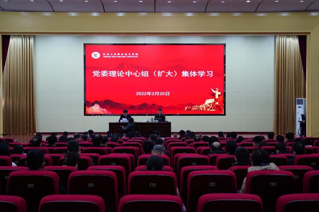 2月25日,学校在孔明路校区大学术报告厅召开党委理论学习中心组(扩大)集体学习,并邀请到省委党校田宪臣教授作党的十九届六中全会精神辅导报告。全体党委理论学习中心组成员及中层干部参加学习。报告会由党委书
