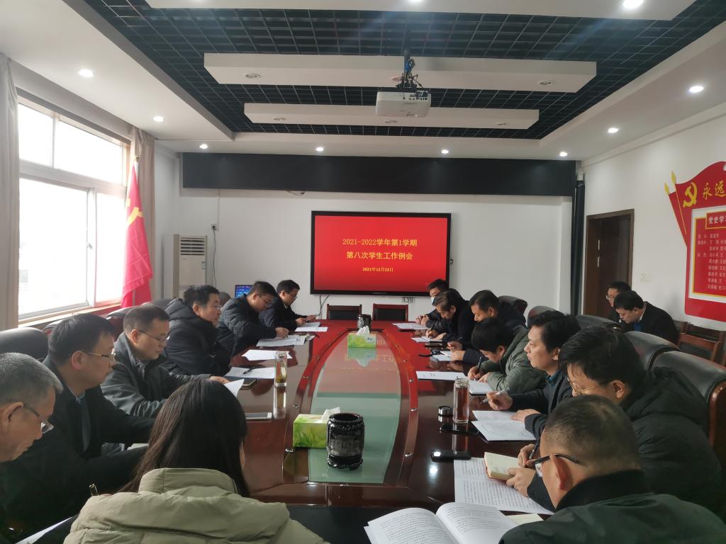 12月23日上午,我校在办公楼三楼会议室召开本学期第八次学生工作例会。副校长王仁伟出席并主持会议。学生处、团委、保卫处、心理健康教育中心、后勤服务中心负责人,各学院(中心)党总支书记、副书记参加会议。