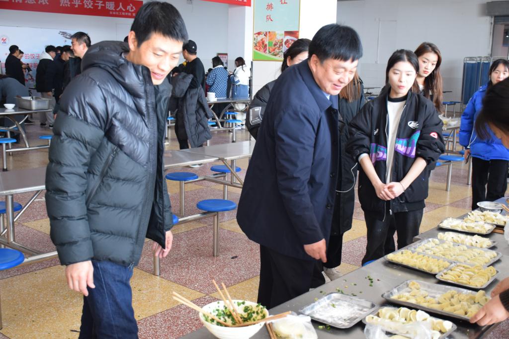 冬至佳节,为了更好的传承中华优秀传统文化,让师生们在寒冷的冬天感受到家的温暖,学校在餐厅三楼举行了一场别开生面的饺子盛宴,学校党委书记温道军、校长王伟、副校长王仁伟在党政办公室、党委宣传部、电子信息工