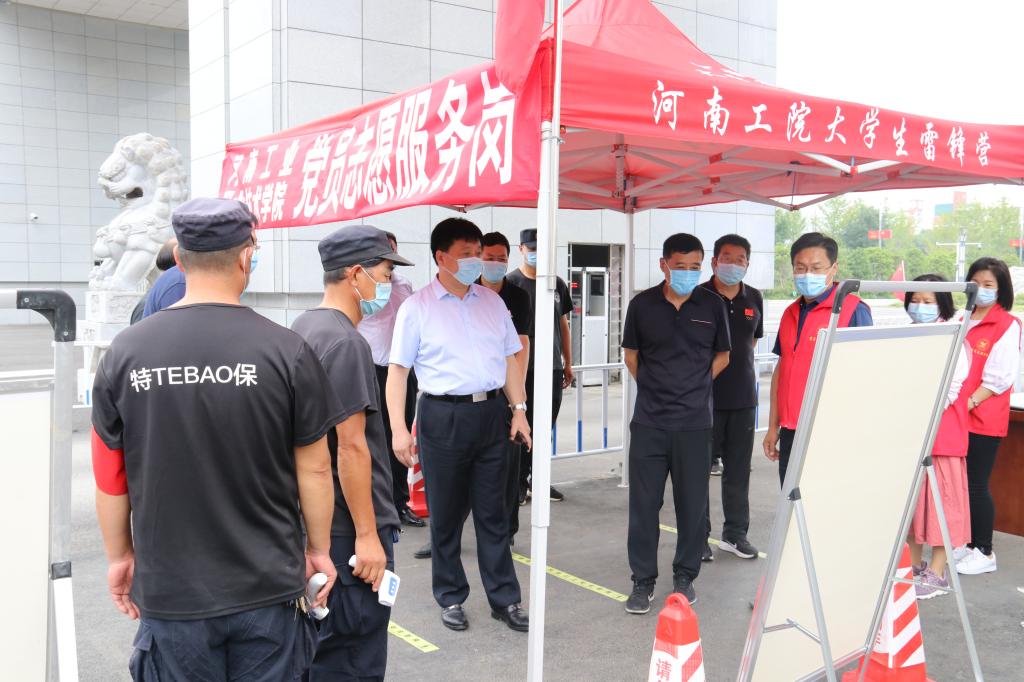 8月16日上午,学校党委书记温道军、校长王伟、党委副书记杜建根、副校长王仁伟、樊有平,带领党政办公室、党委武装部等单位同志,深入孔明路校区、光武路校区、文化路家属院、白塔村值班点督查疫情防控工作。校领