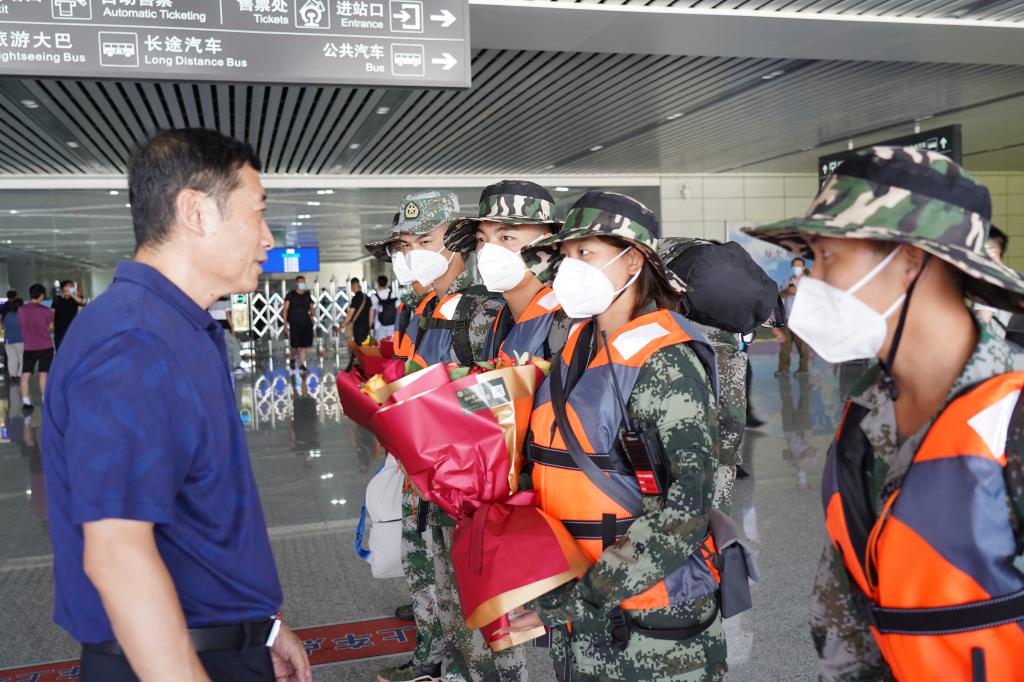 7月30日,参加8天防汛救灾工作的我校7名青年学子平安返回南阳。校长王伟、副校长王仁伟,党政办公室、党委宣传部、团委、机械工程学院、自动化工程学院、建筑工程学院、电子信息工程学院、文化旅游与国际教育学