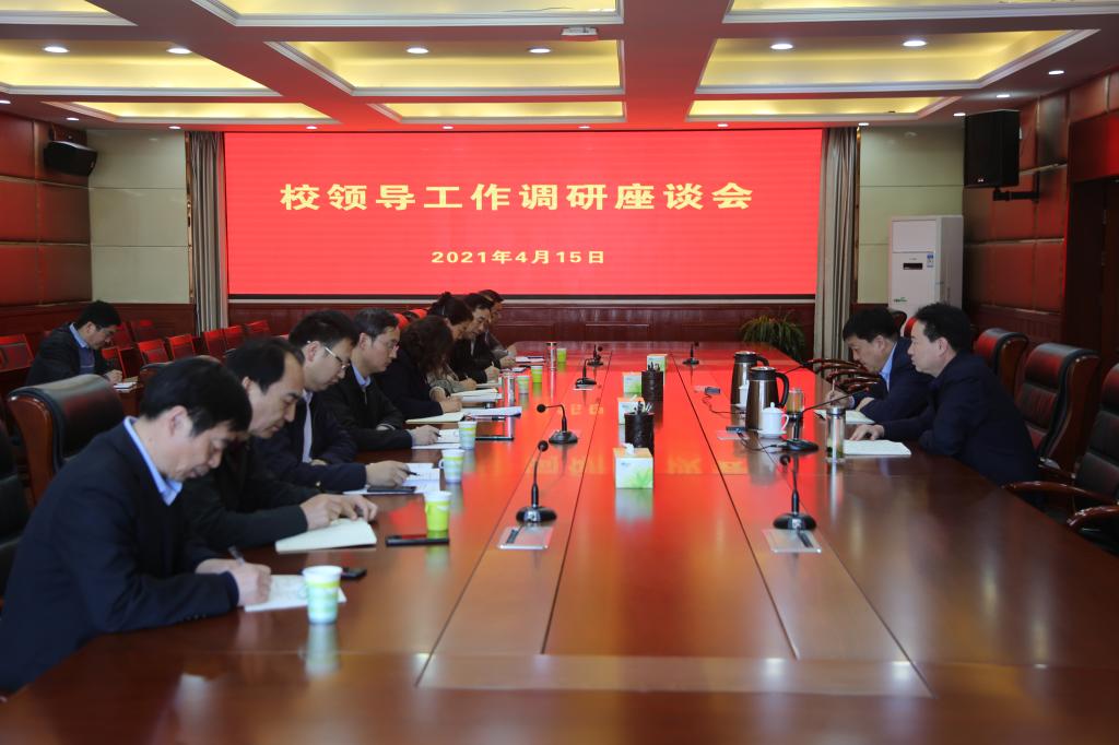 4月15日,学校党委在办公楼第四会议室举行调研座谈会,党委书记温道军就学校工会、安全保卫、科技外事、产教融合、卫生健康、艺术教育、体育教学等工作开展情况听取汇报,就相关问题进行交流座谈。座谈会由工会主
