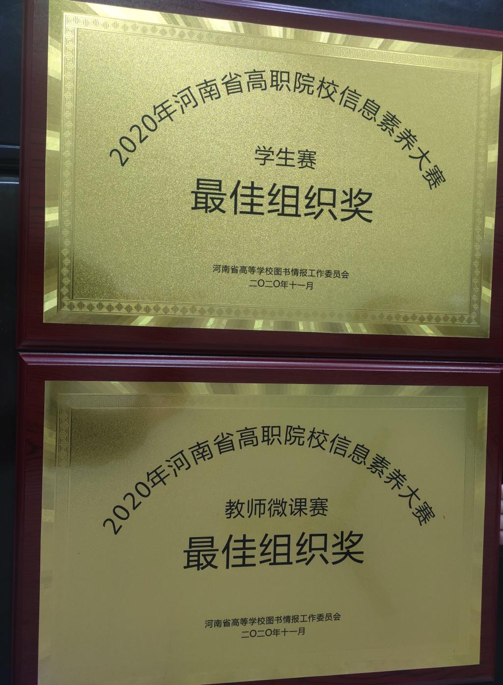 11月5日,2020年河南省高职院校信息素养大赛圆满落下帷幕。经过激烈角逐,我校取得了优异的成绩,其中学生组获得一等奖1名、二等奖5名、三等奖11名,教师组微课赛获得一等奖1名、三等奖3名,同时我校荣