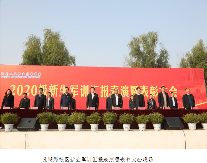 金秋十月,硕果累累。10月19日上午,学校孔明路校区、光武路校区分别举行2020级新生开学典礼暨军训动员大会。校领导温道军、王伟、杜建根、王仁伟、刘纪山、李荣胜、樊有平,以及各职能部门和相关教学院(系