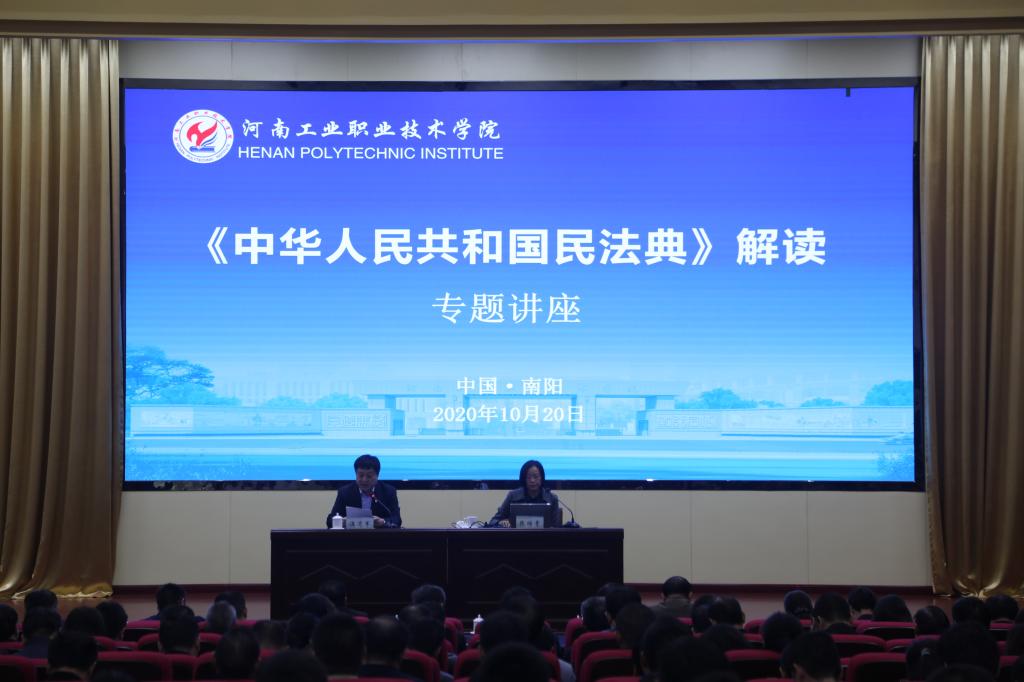 为深入学习贯彻习近平总书记在中央政治局第二十次集体学习会议上的重要讲话精神,充分认识颁布实施民法典的重大意义,更好地推动民法典实施,不断提高学校依法治校水平。10月20日下午,学校特别邀请河南省委党校