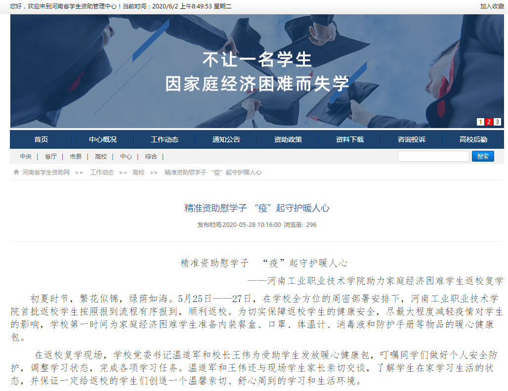 河南省学生资助网:精准资助慰学子 “疫”起守护暖人心