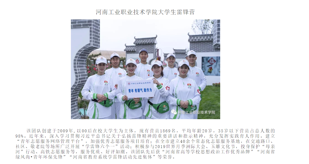 弘扬五四精神,展现青春风采我校大学生雷锋营获“南阳青年五四奖章集体”