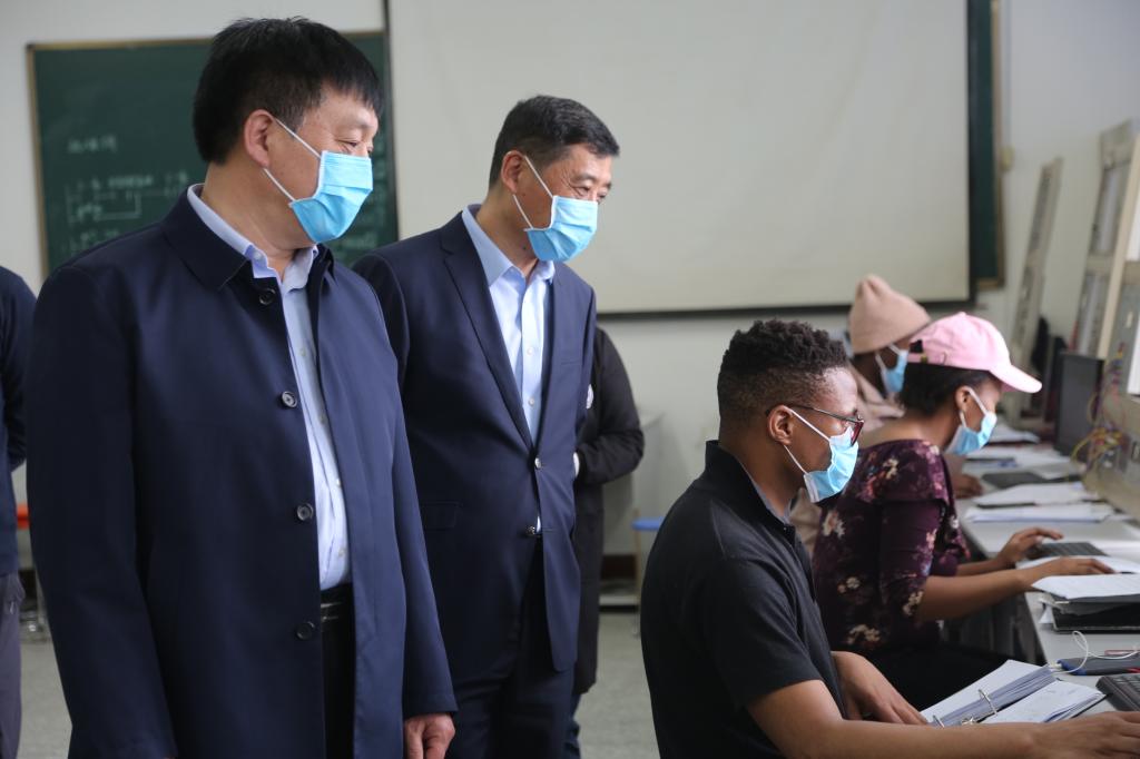 不负春光,留学生复课学习忙。4月15日,学校党委书记温道军、校长王伟、工会主席屈保中,在教务处、科技外事处、机电自动化学院、电子信息工程学院等单位负责人的陪同下,先后来到北实训楼PLC应用技术实训室、