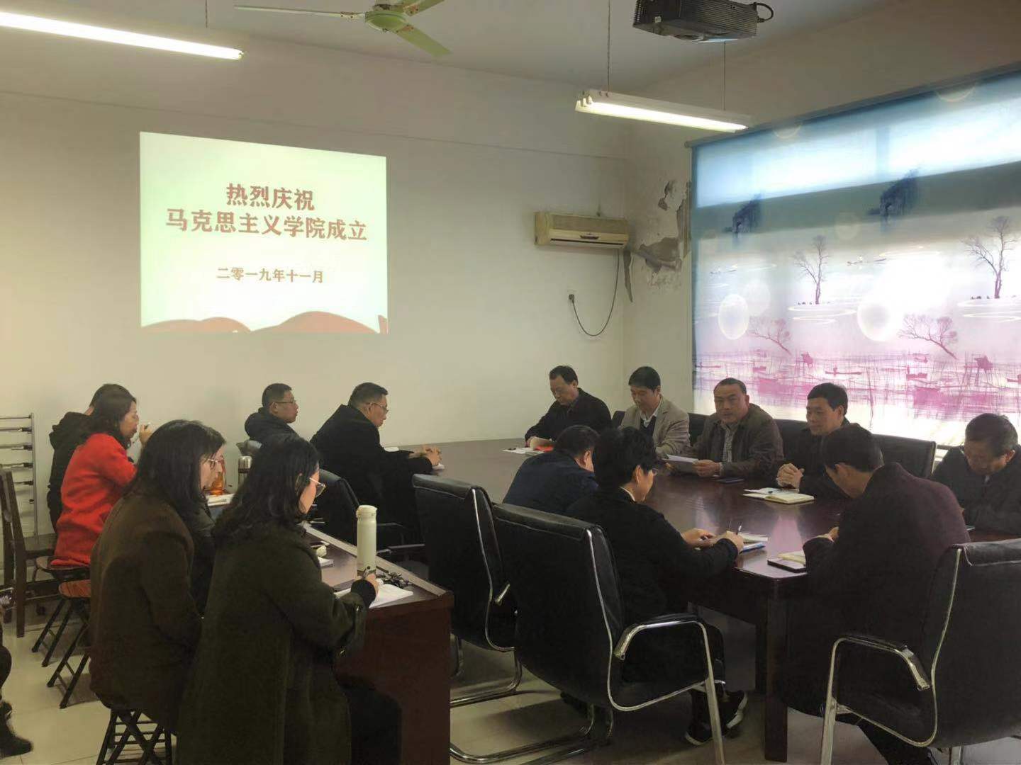 我校思想政治理论课教学部更名为马克思主义学院,标志着我校马克思主义学院正式成立了!2019年11月19日下午,马克思主义学院成立会议由校党委委员、副校长杜建根同志主持,校党委委员、副校长、马克思主义学