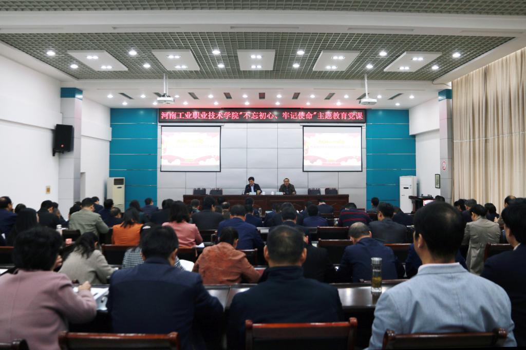 10月15日下午,党委书记温道军在孔明路校区第一会议室以《不忘初心、牢记使命,为实现高水平院校建设目标而不懈奋斗》为题为全校党员干部讲党课。副校长杜建根主持。温道军书记在党课中从初心和使命的关系入题,