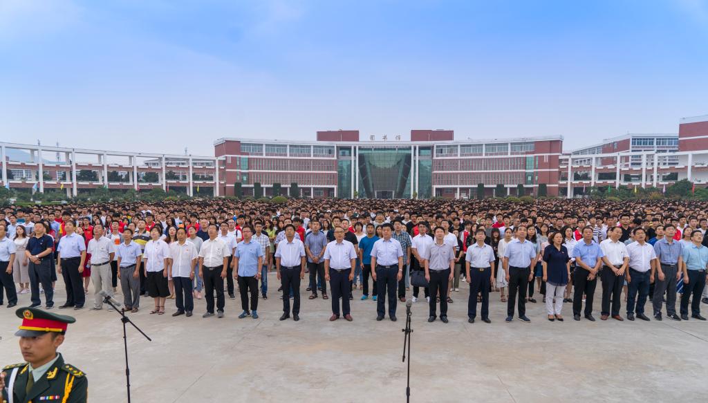 9月2日早上,我校举行本学期首次升旗仪式。校领导温道军、杜建根、王仁伟、刘纪山、贾庆成、屈保中和全体中层干部、学生管理人员及全校学生参加本次升旗仪式。伴着雄壮激昂的国歌,五星红旗迎着初升的太阳冉冉升起