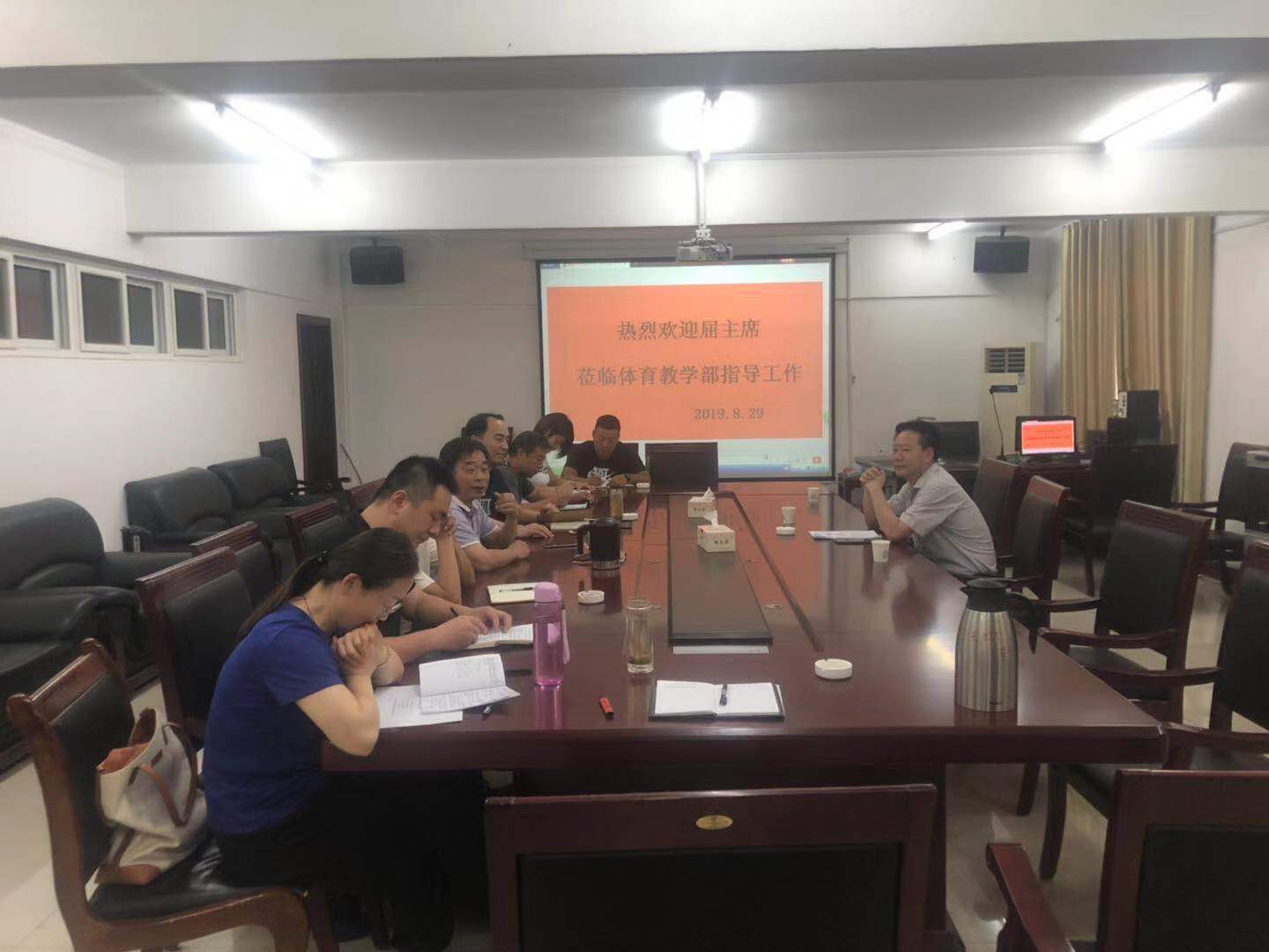 2019年8月29日上午9点,党委委员、校工会主席屈保中到体育教学部调研指导工作,体育教学部领导班子成员、办公室和教研室负责人及骨干教师代表参加了座谈交流会。会议由体育教学部书记刘玉有主持。调研座谈会
