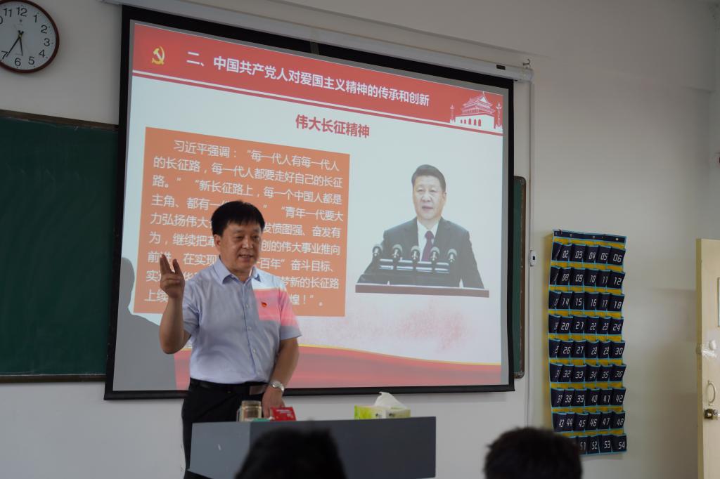 6月17日下午,党委书记温道军以“高举爱国旗帜,传承革命精神,做担当民族复兴大任的时代新人”为题,为机电自动化学院电气工程班同学上了一堂生动的思想政治理论课。温道军从当前“中美贸易战”谈起,对爱国主义
