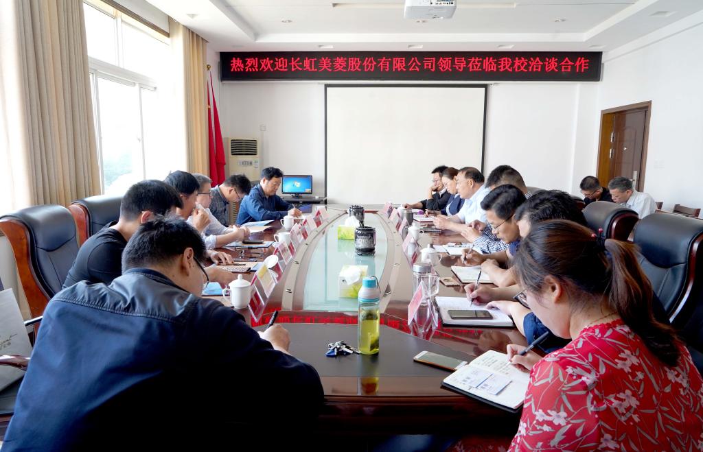 5月22日,长虹美菱股份有限公司副总裁兼工会主席张小林、人事部经理朱俊等一行5人莅临我校洽谈校企合作。学校副校长杜建根、产教融合发展中心主任丁延松、教务处处长曹双梅、机械工程学院院长朱成俊、电子信息工