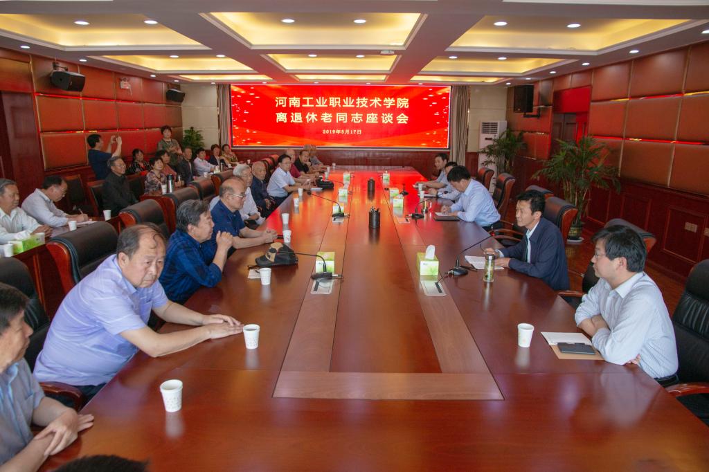 2019年5月17日上午,学校在孔明路校区行政楼第四会议室召开离退休老同志座谈会。校党委书记温道军,副校长杜建根、王仁伟、刘纪山,党政办、组织部、宣传部、人事处、离退处负责同志及40余名离退休老同志代