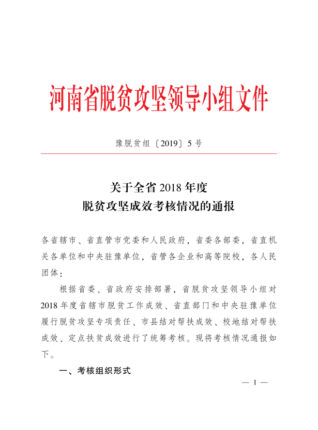 4月27日,河南省脱贫攻坚领导小组下发《关于在全省2018年度脱贫攻坚成效考核情况的通报》(豫脱贫组﹝2019﹞5号),我校作为承担校地结对帮扶的高等院校,被确定为“综合评价好”单位受到通报表扬学校从