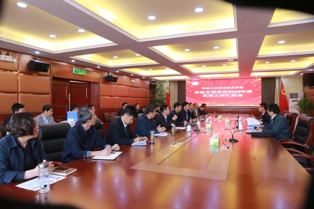 10月31日下午,“省级文明单位”复查验收组第二组组长、省教育厅张立众处长一行莅临我校复查省级文明单位创建工作。校党委书记胡龙廷,党委副书记、副校长温道军,副校长王仁伟出席,学校精神文明建设指导委员会
