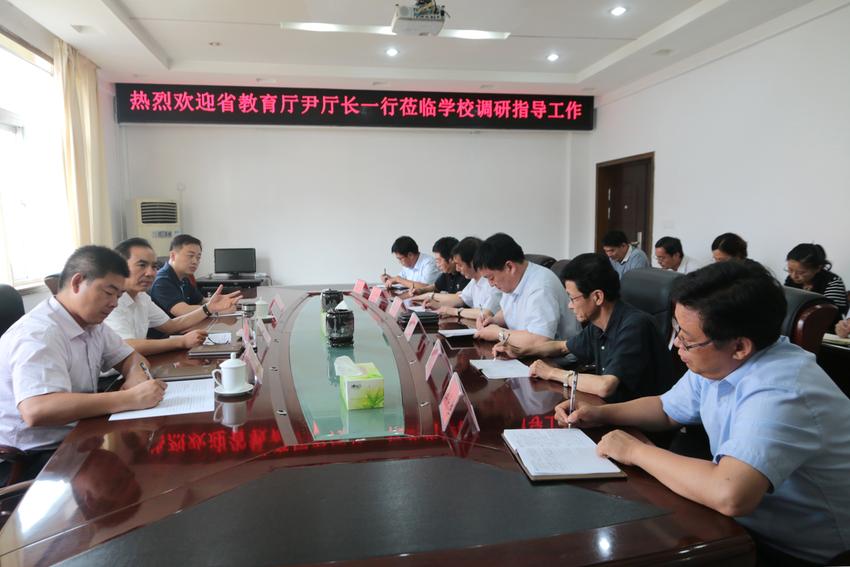 6月20日,省教育厅副厅长尹洪斌带领省教育厅发展规划处副处长杨冰、职业教育与成人教育处主任刘东洋莅临我校调研指导工作。校领导胡龙廷、温道军、王仁伟、刘纪山、贾庆成、李荣胜出席会议,党政办、组织部、宣传