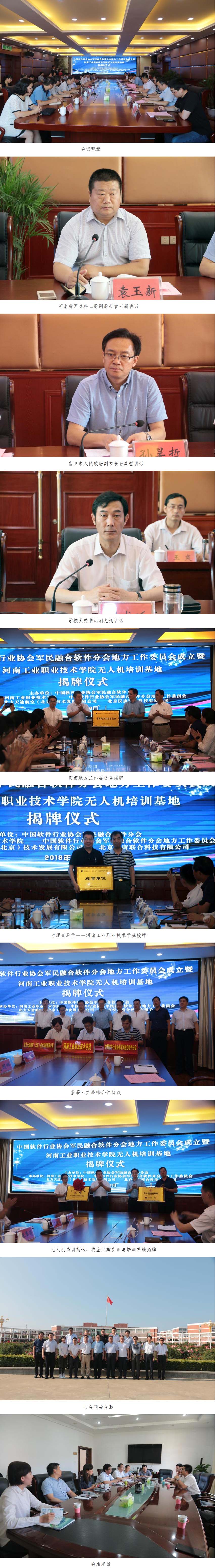6月22日,中国软件行业协会军民融合软件分会地方工作委员会成立暨新葡的京集团8814vip无人机培训基地签约揭牌仪式在我校第四会议室成功举行。河南省国防科工局副局长袁玉新,南阳市人民政府副市长孙昊哲,原河南