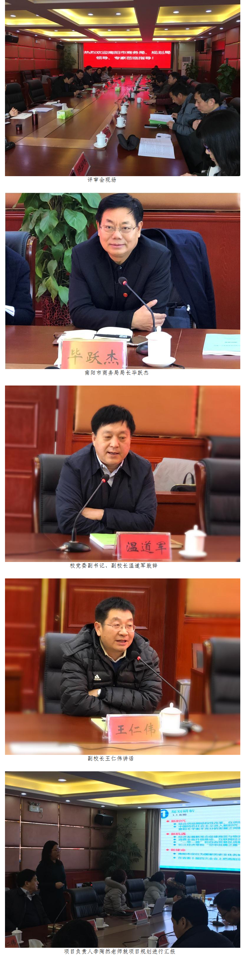 1月22日下午,《南阳市区域性商贸物流中心规划(2017-2020)》项目评审会在我校行政楼4楼会议室召开。南阳市商务局局长毕跃杰、副局长田军、对外开放服务办公室主任潘少峰,市规划局仝太栋科长、商务局