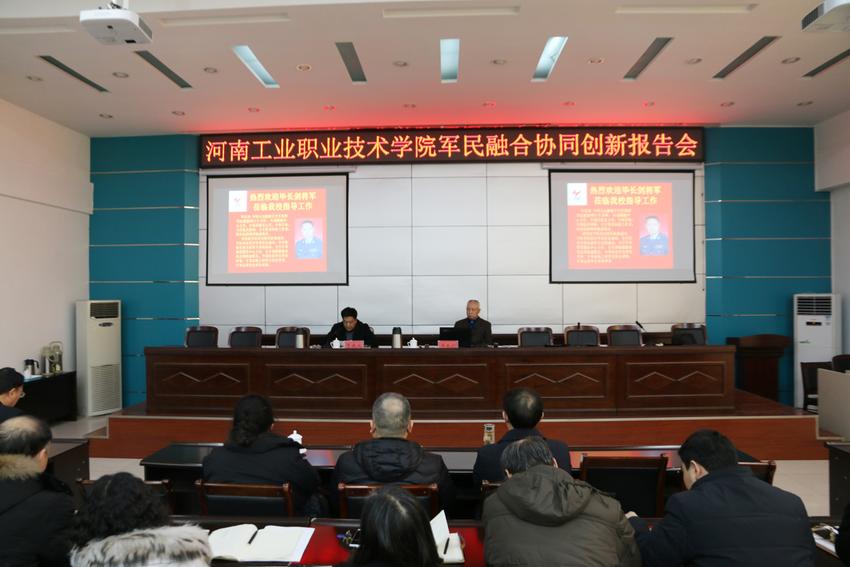 1月16日下午,我校借中国军民融合协同创新联盟教育基地揭牌之际邀请原中国人民解放军空军指挥学院毕长剑少将为学校教职工作了“军民融合协同创新”专题报告会,报告会由副校长贾庆成主持,校党委书记胡龙廷、相关