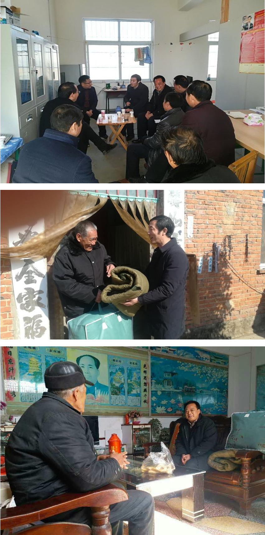 1月11日上午,学校党委书记胡龙廷、副校长李金波带领相关部门人员到学校定点扶贫和文明单位结对帮扶村——方城县杨集乡河坡村进行工作调研,看望学校驻村工作队员,走访慰问困难群众,与杨集乡乡长岳泰斌、乡人大