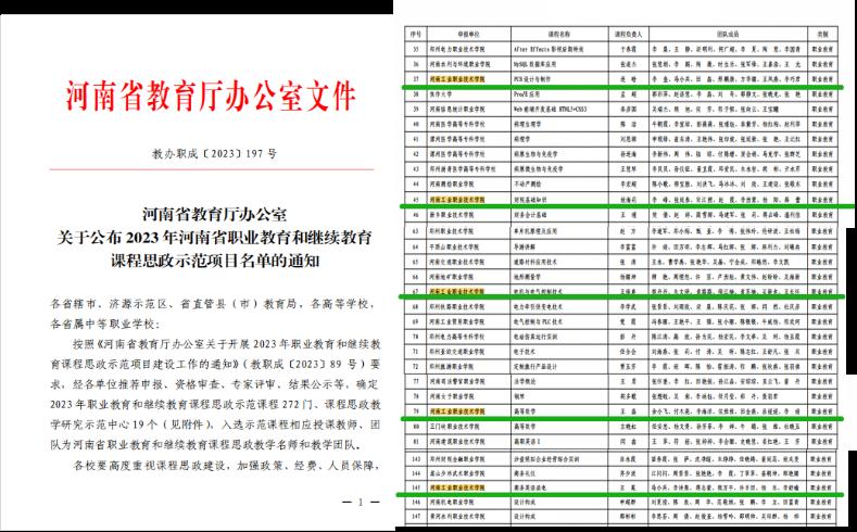 【喜报】我校新增5门2023年河南省职业教育类课程思政示范课程