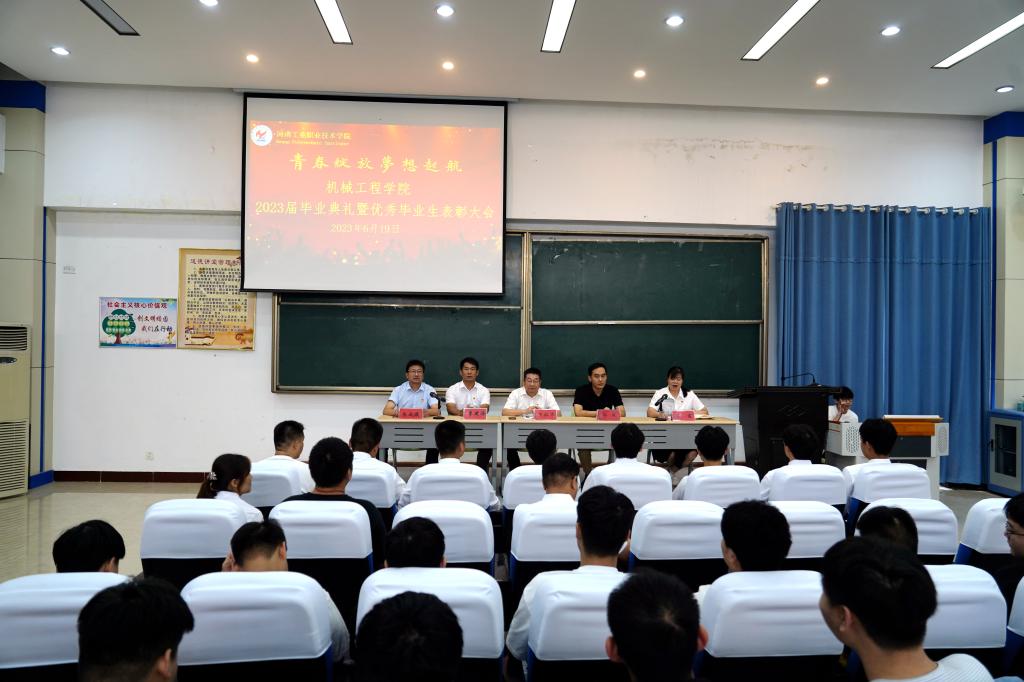 聚是一团火,散是满天星。6月19日下午,机械工程学院在道德讲堂隆重举办2023届毕业生典礼暨优秀毕业生表彰大会。学校党委副书记、工会主席王仁伟,学生处、教务处负责同志和机械工程学院党政领导及毕业班师生