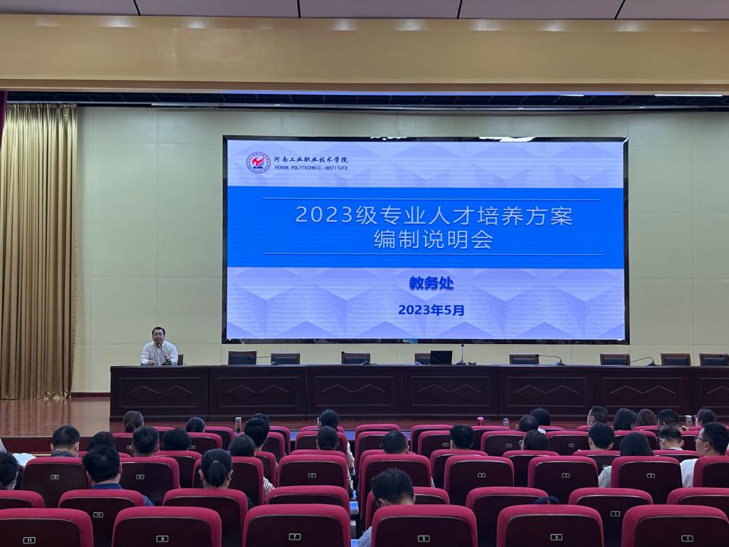 5月24日下午,学校在孔明路校区大学术报告厅召开2023级专业人才培养方案编制说明会,教务处、各学院系主任、各教学单位教学管理科科长和各教研室主任参加会议,会议由教务处杜恒处长主持。会上,杜恒处长强调