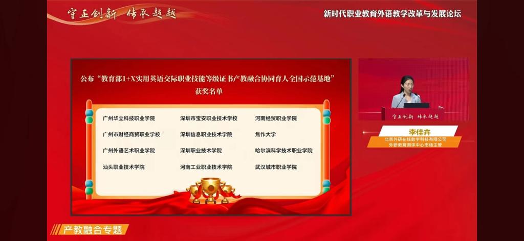 我校荣获“教育部1+X实用英语交际职业技能等级证书产教融合协同育人全国示范基地”