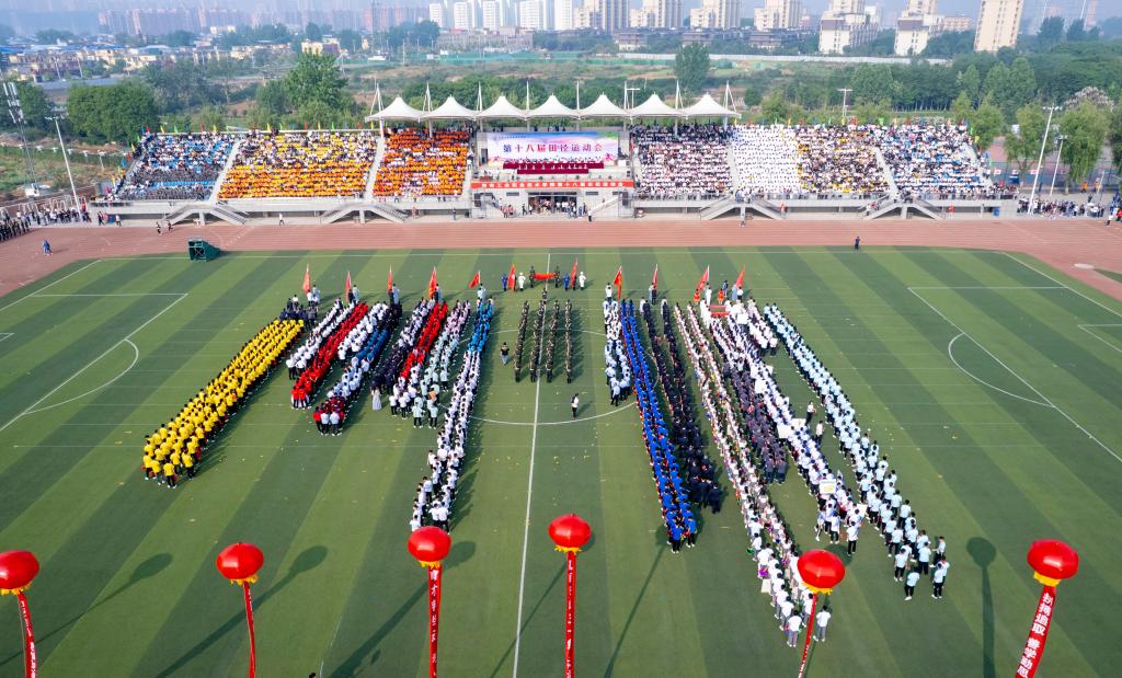 春风浩荡,万象更新,4月20日上午,新葡的京集团8814vip第十八届田径运动会开幕式在孔明路校区田径场隆重开幕。学校校长王伟,副校长贾庆成、屈保中、樊有平、马小兵出席,大会组委会委员和各代表团团长在主席台