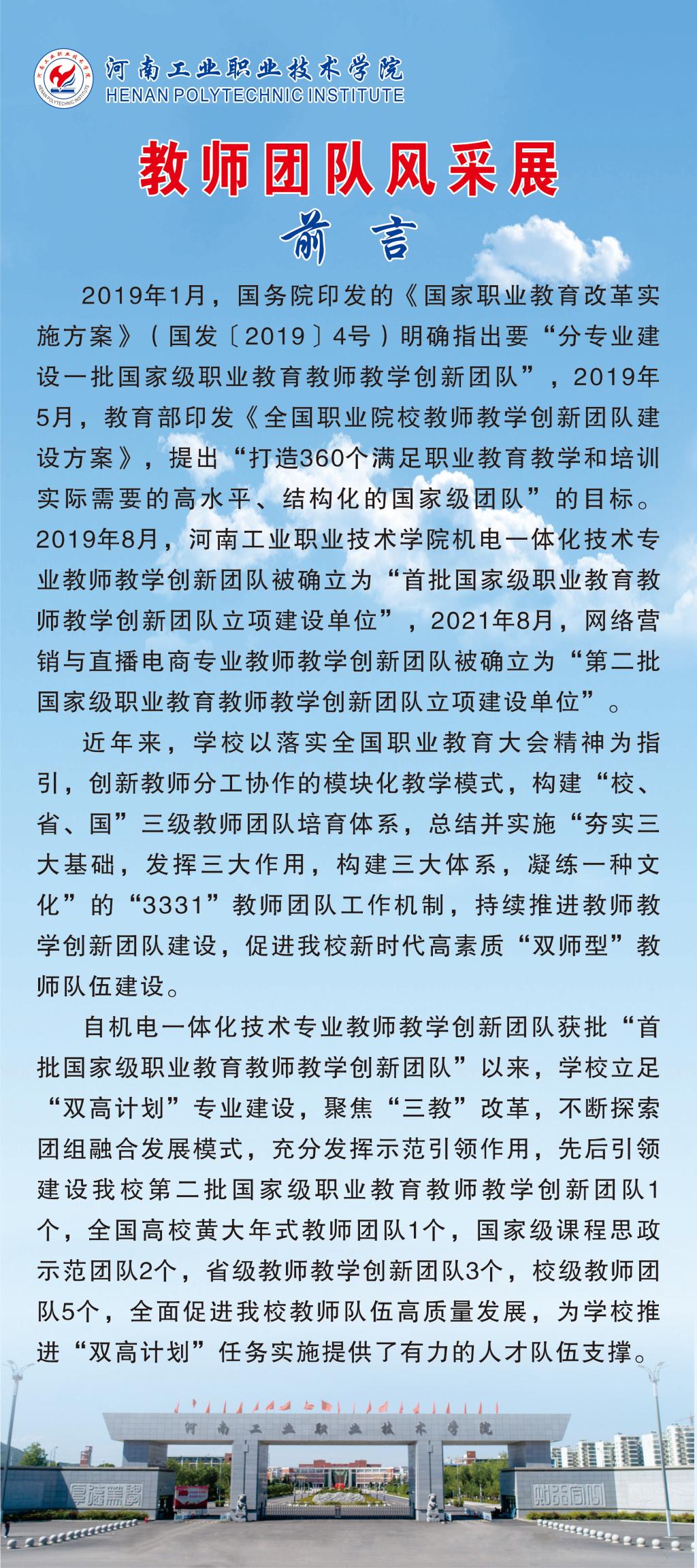 编者按:教师团队建设是推进职业教育“双师型”教师队伍高质量发展的有力抓手和重要举措,近年来,学校全面构建“国家级、省级、校级”三级教师团队建设格局,探索实践“夯实三大基础、发挥三大作用、构建三大体系,