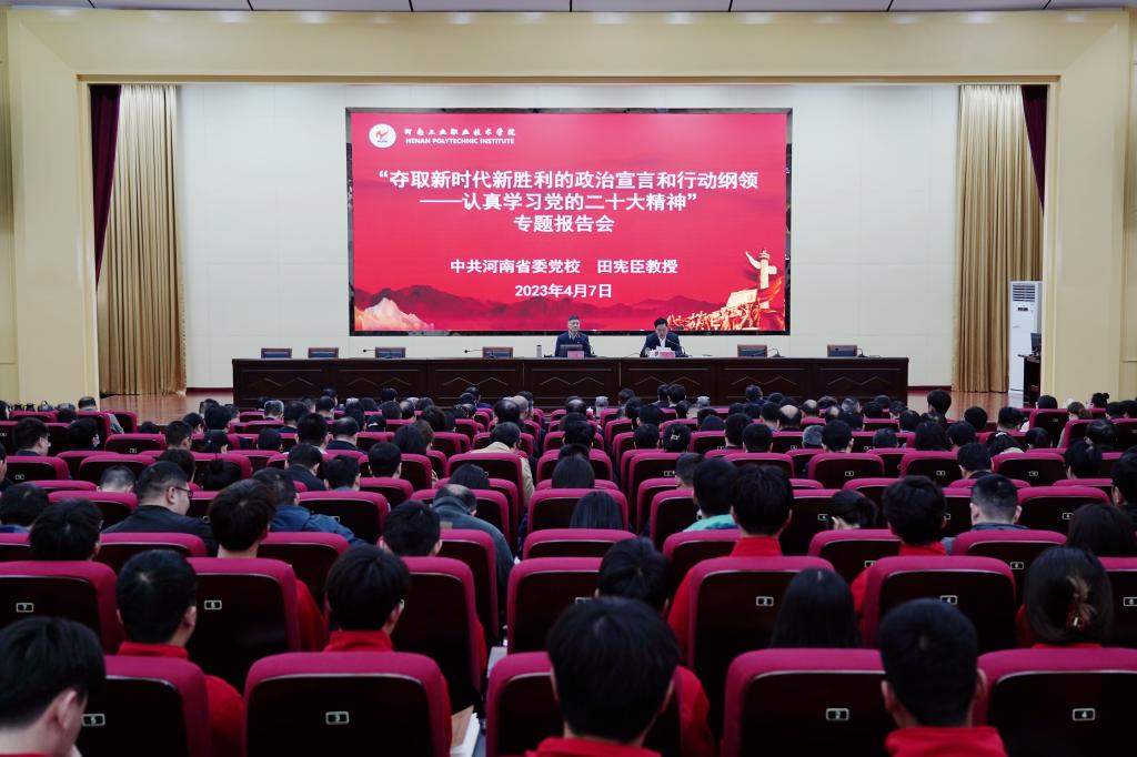 4月7日,学校在孔明路校区大学术报告厅举办深入学习党的二十大精神专题报告会,河南省委党校田宪臣教授作宣讲报告。校领导温道军、王伟、王仁伟、贾庆成、屈保中、马小兵、侯同江,全体中层干部、马克思主义学院教