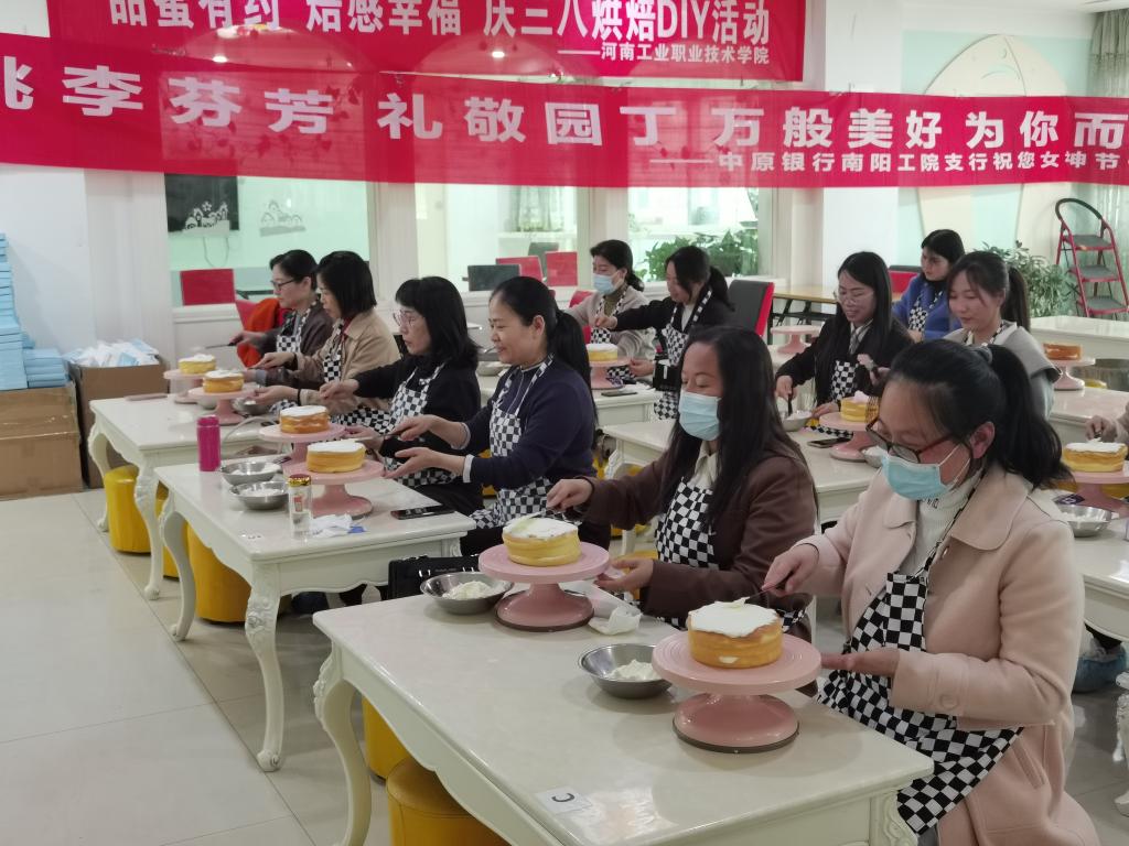 为庆祝“三八”妇女节,丰富女教职工精神生活和业余生活,展现女教职工昂扬向上的精神面貌,学校开展庆祝“三八”妇女节一系列活动,本次活动得到了各分工会的大力支持。活动之一“蛋糕烘焙活动”3月6日下午,蛋糕
