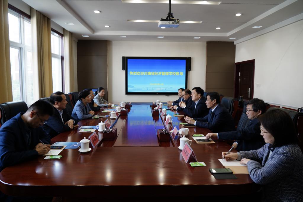 为进一步增强交流与学习,3月10日上午,河南省经济管理学校党委书记贺望琢,副校长徐世国、裴文超,纪委书记吴超,办公室主任李公昕等一行到我校考察交流。校领导温道军、王伟、杜建根、马小兵、侯同江出席交流会