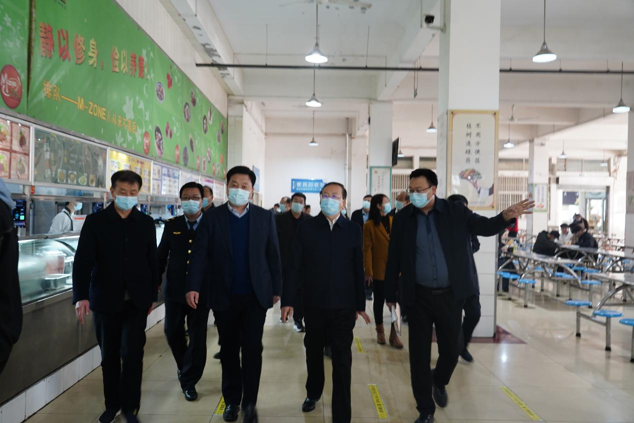 3月3日上午,市人大常委会党组书记、主任张生起带领市场监督管理局相关同志,在我校党委书记温道军的陪同下,莅临我校孔明路校区学生食堂督导我校食品卫生安全工作。市食安办副主任赵天林、市场监督管理局餐饮食品