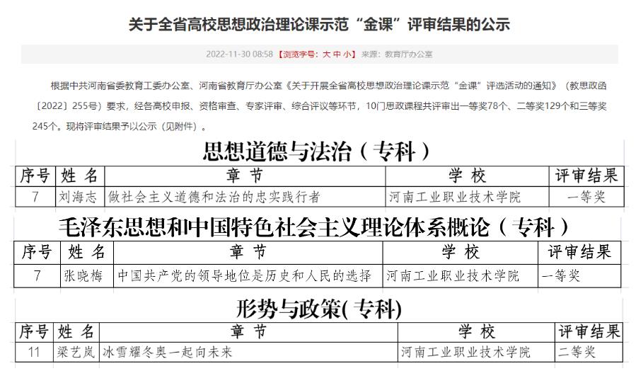 根据中共河南省委教育工委办公室、河南省教育厅办公室《关于开展全省高校思想政治理论课示范“金课”评选活动的通知》(教思政函〔2022〕255号)要求,马克思主义学院组织教师积极报名参加评选活动,我校推荐