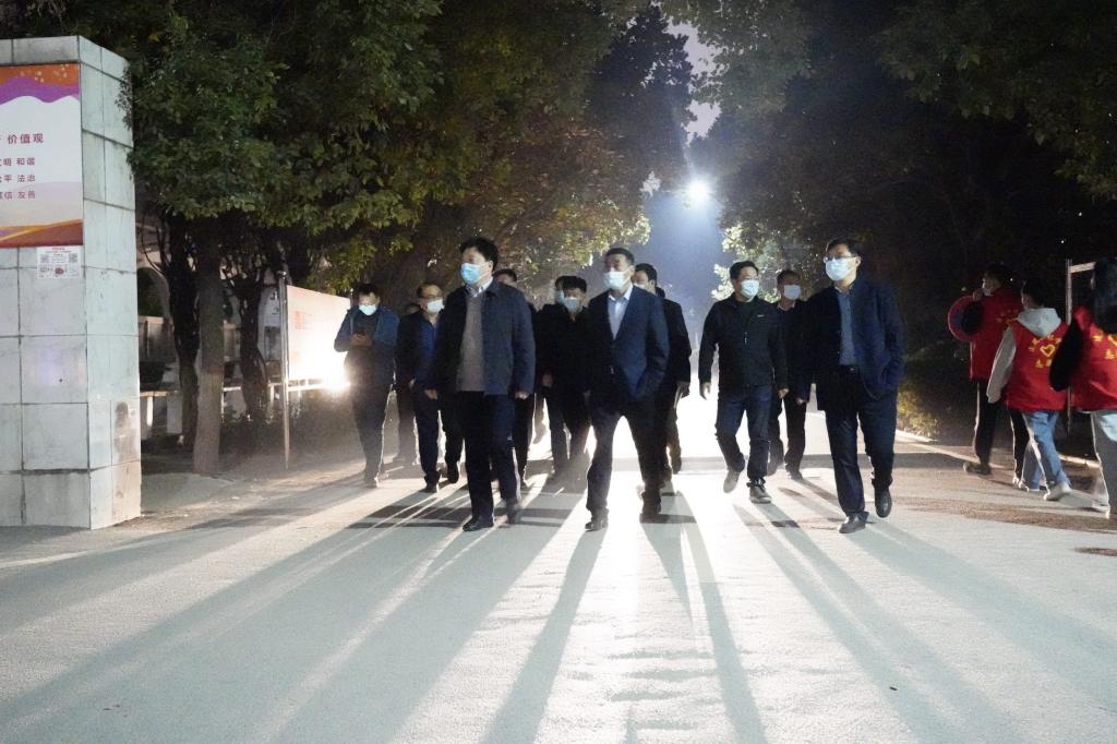 为从严从紧做好疫情防控工作,筑牢校园疫情防控屏障,切实维护校园安全稳定,11月8日晚,党委书记温道军、校长王伟、党委副书记杜建根、纪委书记李荣胜带领学校疫情防控九个工作专班负责人深入光武路、孔明路校区