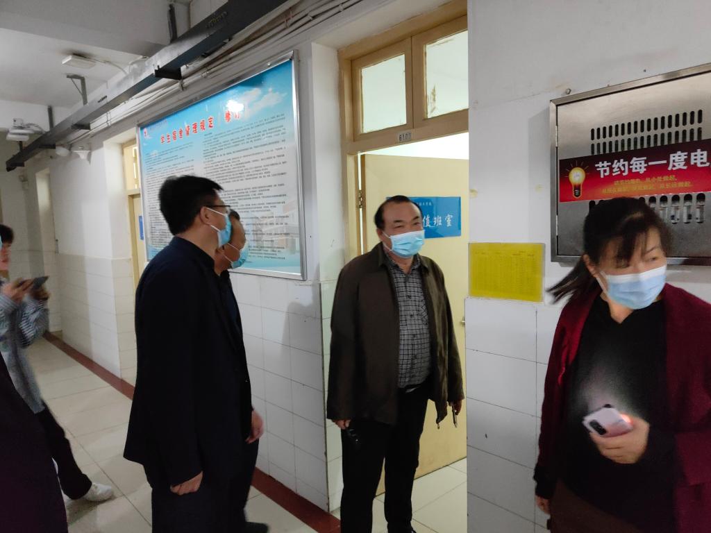 10月19日晚,副校长贾庆成带领值班中干、经济贸易学院院长张延泰、党总支副书记王存才和辅导员老师深入学生公寓查看宿舍内务情况,排查宿舍安全隐患,指导疫情防控工作并与同学们亲切交流。校领导仔细查看每间宿