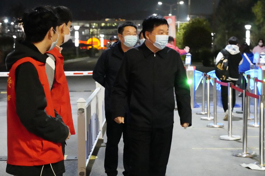 常态化疫情防控下,每一位学生都是学校领导和老师的牵挂,10月2日晚,学校党委书记温道军、副校长王仁伟深入学校孔明路校区南门、东门,实地查看疫情防控措施落实情况,关心慰问值班值守党员干部,与返校学生亲切