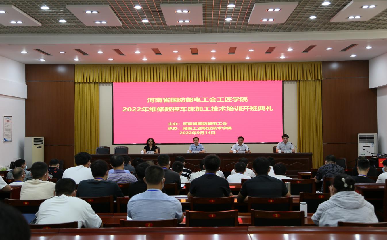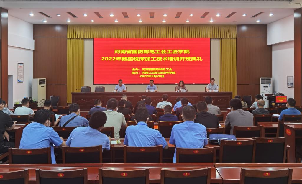 9月20日,河南省国防邮电工会工匠学院2022年数控铣床加工技术培训班开班典礼在学校孔明路校区第一会议室举行。全国劳动模范、河南省总工会兼职副主席孟祥忠,继续教育学院院长莫宇芬,机械工程学院副院长黄力