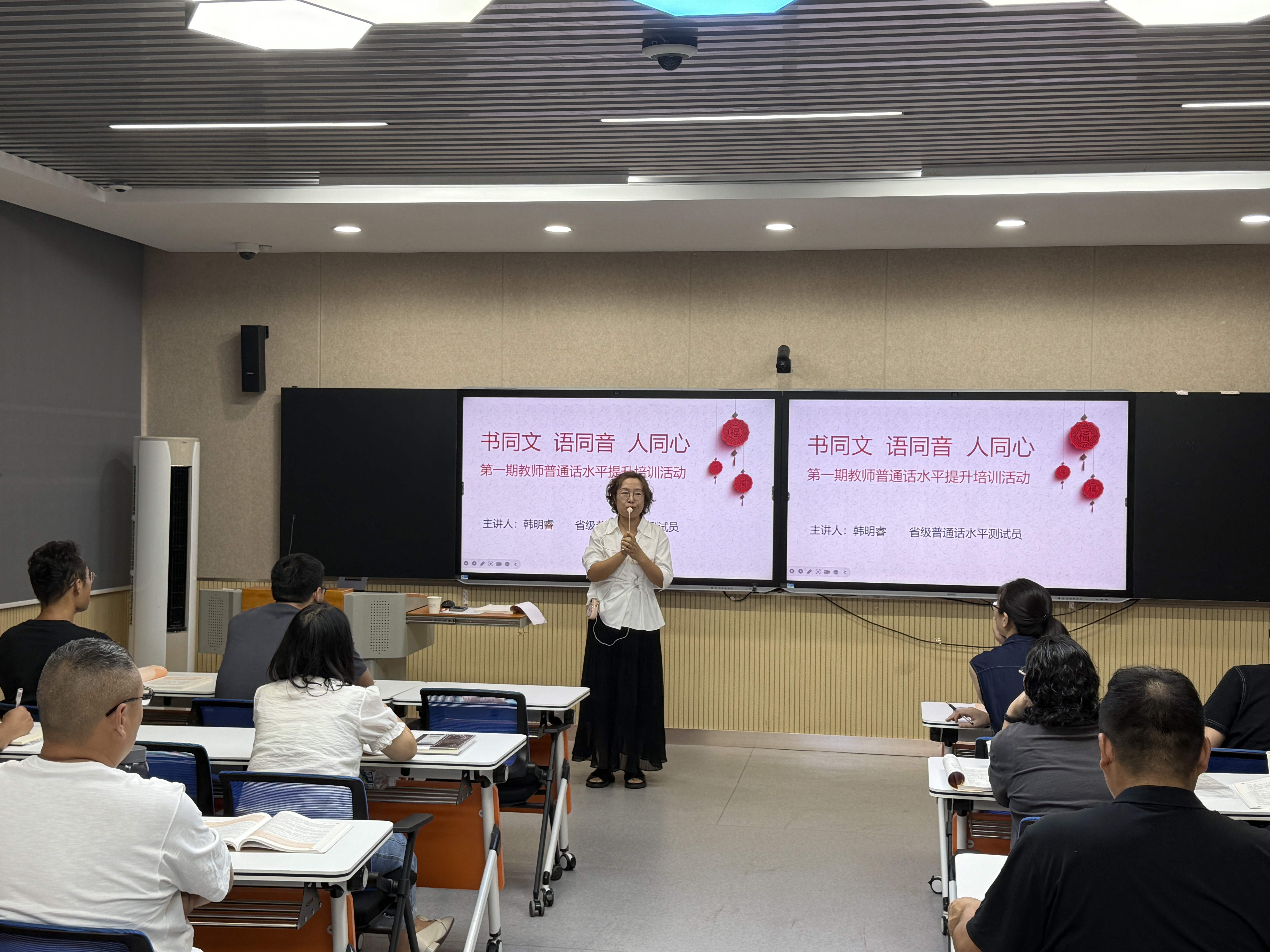 为加强教师队伍语言文字应用规范化建设,为学生营造更加优质的语言学习环境,同时落实第28届全国推广普通话宣传周活动要求,学校第一期普通话水平提升培训于9月16日开班。本次培训活动共有26名教师报名参加。