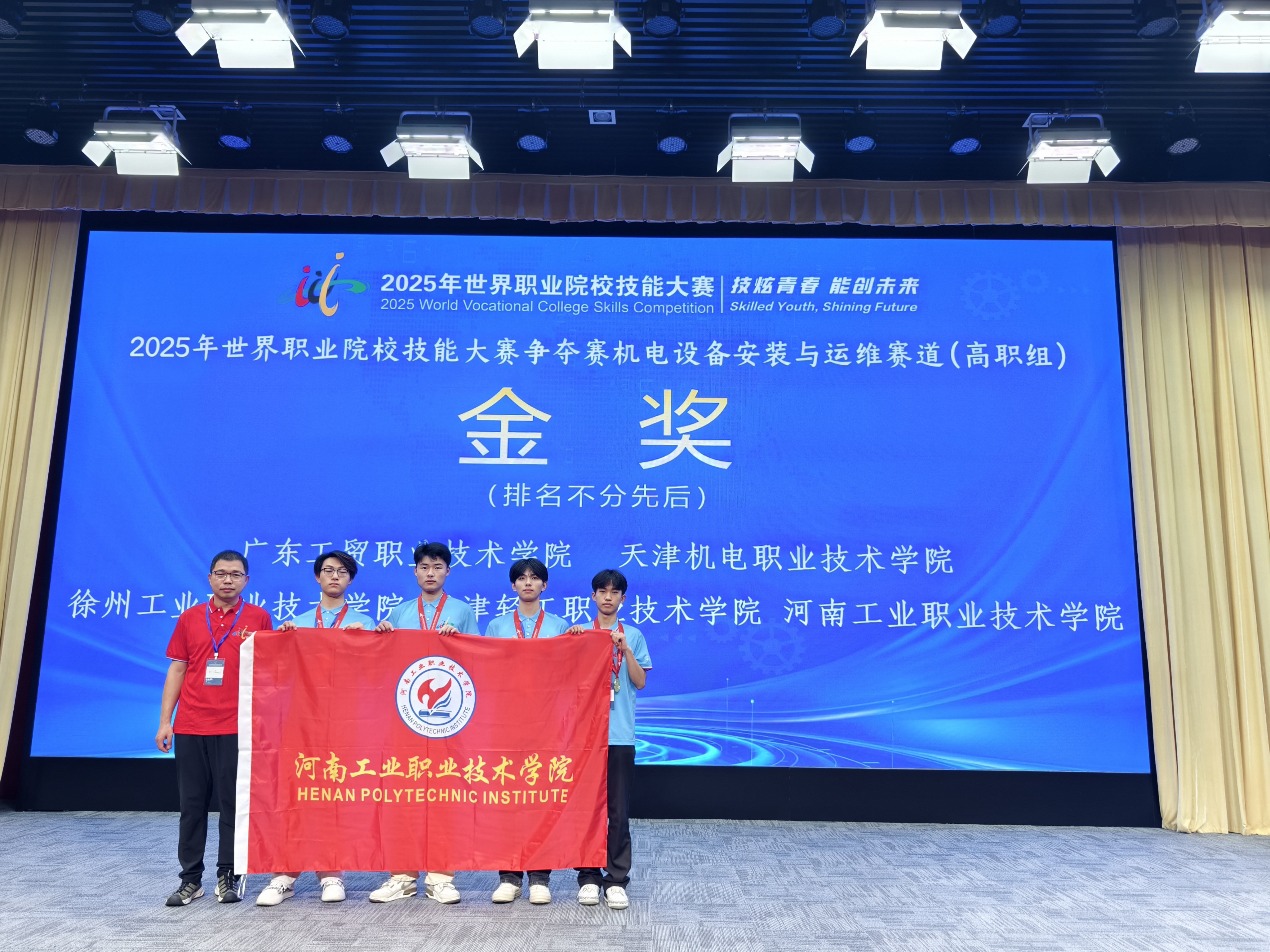 日夜钻研的灯光、反复演练的身影、攻克难关的欢呼,这份全力以赴的执着使我校学子在2025年世界职业院校技能大赛总决赛争夺赛中共斩获2金2银2铜。优异的成绩不仅彰显了学校的办学实力与人才培养质量,更为我校职业教育的发展注入了新的动力。未来,学校将继续以技能大赛为引领,深化产教融合、校企合作,为培养更多适应行业需求的高素质技术技能人才而不懈努力。