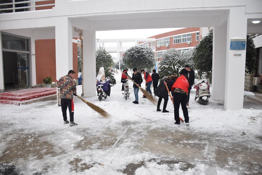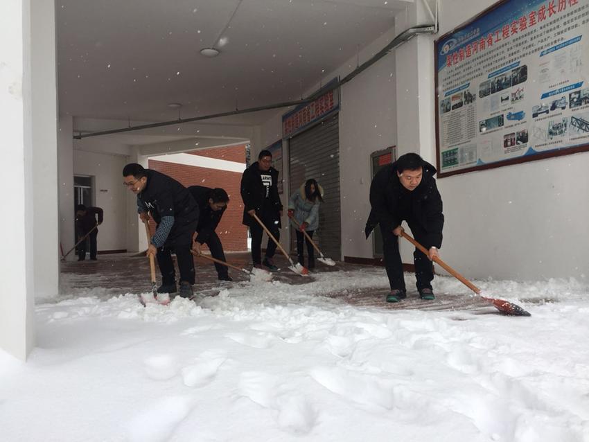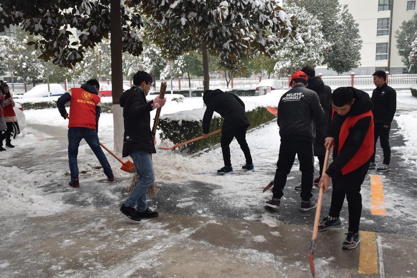 1月3日,2018年首场降雪翩然而至,把整个世界装扮得银装素裹,美丽的工院校园也披上了洁白的外衣。伴随着凛冽的寒风,气温骤降,道路上的积雪有的已经结冰,导致路面情况极为不好,银装素裹的美景给大家带来欣喜的同时,也给校园安全出行带来隐患。为保障师生出行安全,机械工程学院在第一时间就自发组织开展冬季扫雪活动。