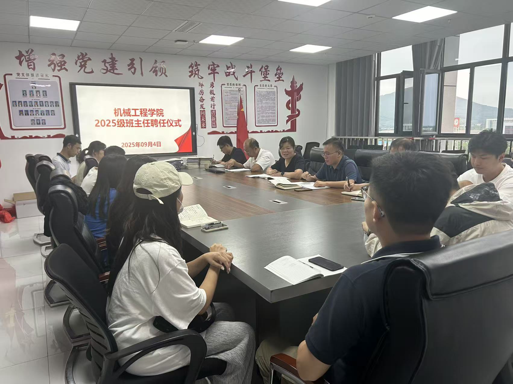 为进一步加强学生思想政治教育与日常管理工作,明确育人职责,凝聚育人合力,确保新学期各项学生工作有序开展。9月4日下午,学院在唯实楼L2711会议室举行班主任聘任仪式暨新生入学教育军训动员大会,学院学生工作队伍及2025级新生班主任参加会议。